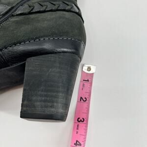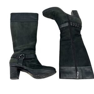 Clarks Artisan Active Air Black Leather Tall Knee High harness Heel Boots sz 8.5