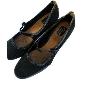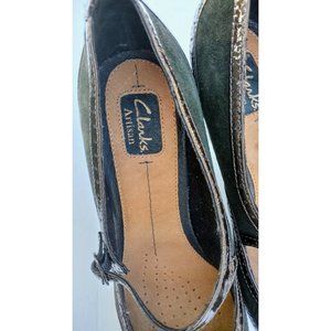 Clarks Artisan Active Air Womens 11 M Green Patent Leather Suede Mary Jane Heels
