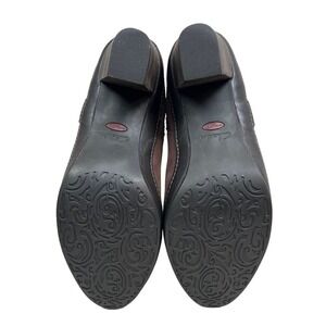 Clarks Artisan Ankle Boot Brown Nubuck Harness Strap Block Heel Zip Women Sz 9M