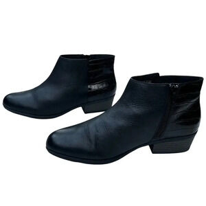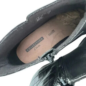 Clarks Artisan Ankle Boots Black Leather Alligator Booties Heel Women's Size 10