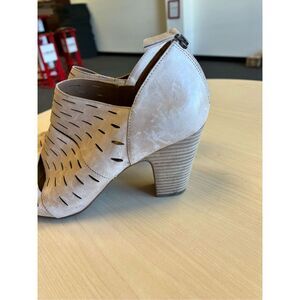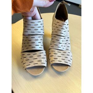 Clark’s Artisan Beige Perforated Slit Leather Low Heel Back Zip Open Toe Bootie