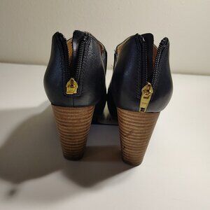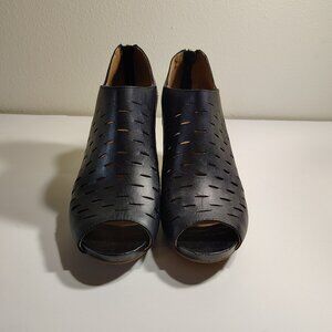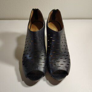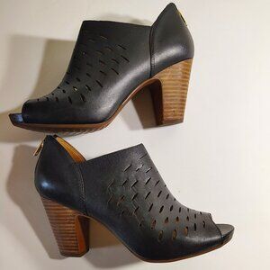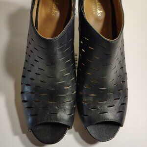 Clarks Artisan Black Leather Cutouts Open Toe Chunky Boot Heel Perforated