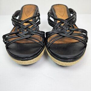Clarks Artisan Black Leather Strappy Braided Espadrille Wedge Platform Sandal