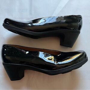 Clark’s Artisan Black Patent Leather Comfort Pump/Heels women’s size 9.5 M. GUC