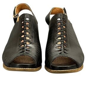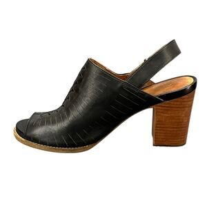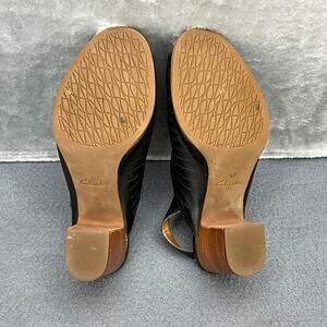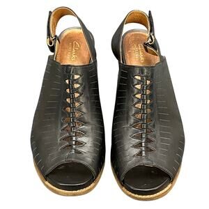 Clarks Artisan Briatta Slingback Black Leather Block-Heel Peep Toe Mule 10M