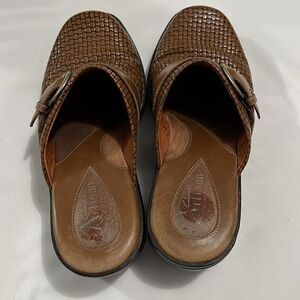 Clarks Artisan Brown Basketweave Leather Mules