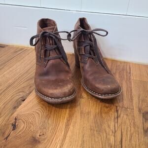 Clarks Artisan Brown Leather Ankle Boots Lace Up Wide Width Size 8.5