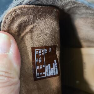 Additional details: ankle boot, lace up and tie closure, rubber sole. Real leather, nice quality boot would be cute with dresses or jeans.