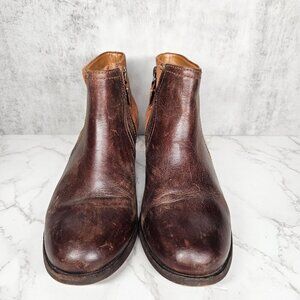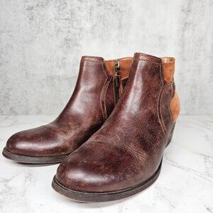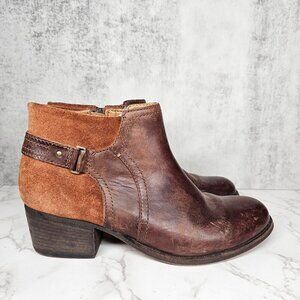 Clarks Artisan Brown Leather Suede Ankle Boots Side Zip Block Heel Size 8.5