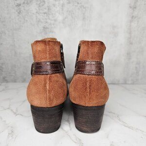 Tags: ankle boots, leather boots, suede boots, Clarks Artisan, women's boots, brown boots, side zipper boots, block heel boots, casual boots, professional boots, stylish footwear, durable boots, size 8.5
