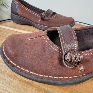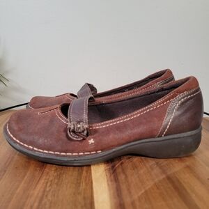 Clarks Artisan Brown Suede Leather Mary Jane Flats Comfy Size 8.5