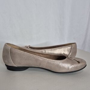 Clarks Artisan Candra Light Champagne Leather Ballet Flat Slip-On Shoe - Size 9