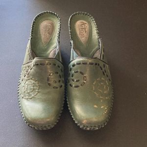 Clarks Artisan Collection Green Clog Size 7M Swirl Design