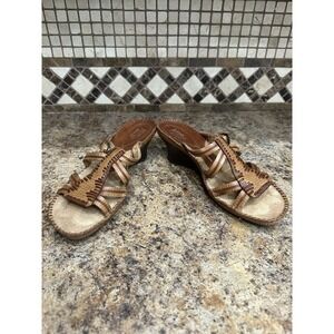 Clarks Artisan Collection Wedge Brown Leather Open Toe Sandals Women's Shoes 8.5