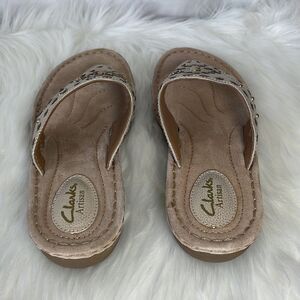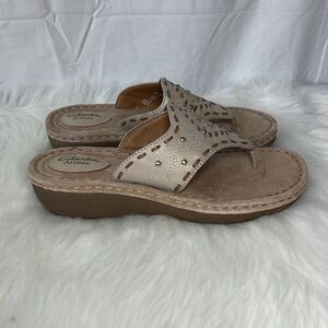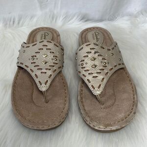 Clarks Artisan Cream Leather Studded Thong Sandals Sz 8.5