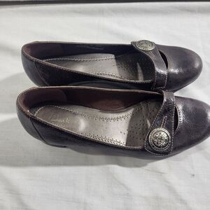 Clarks Artisan Dark Brown Leather Heels Women's Size US 7M Low Heel Floral
