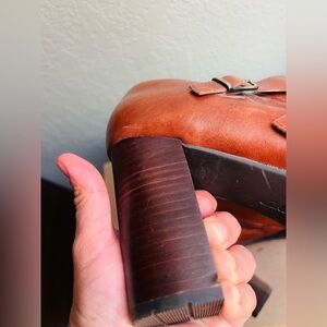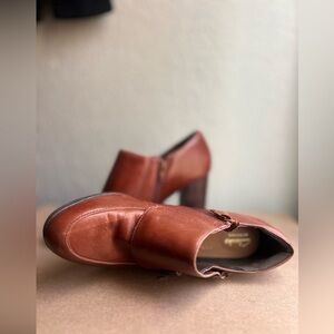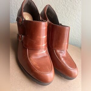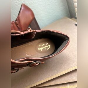 Clarks Artisan Elipsa Mae Double Buckle Brown Block Heels Ankle Boots Size 10