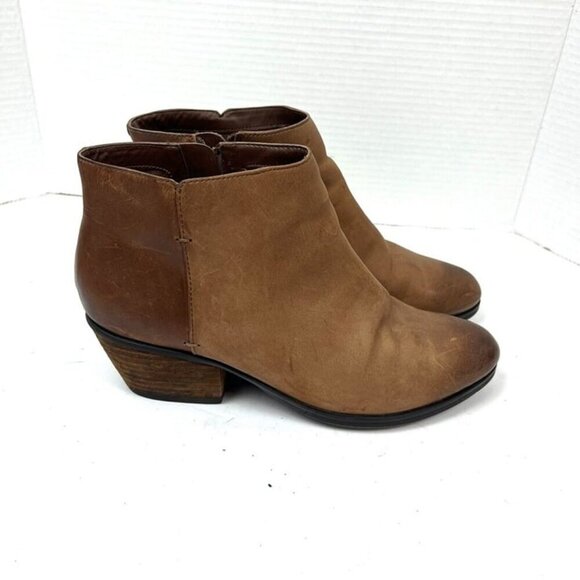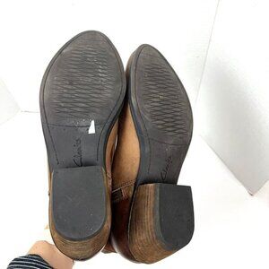 Clarks Artisan Gelata Italia Women's 9.5 Tan Nubuck Block Heel Ankle Boot Bootie