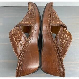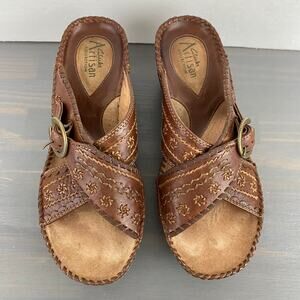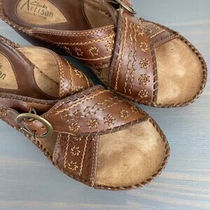 Clarks Artisan Gothic Wedge Sandals Women Size 6M Brown Embroidered Leather Boho