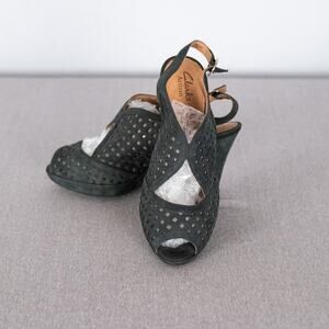 Clarks Artisan Leather Slingback Heels Women's Size 7M Open Toe Laser Cut Boho