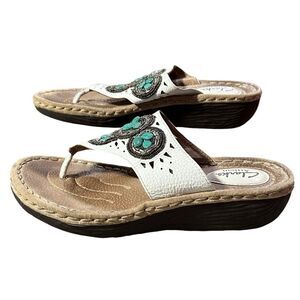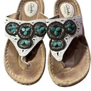 Clarks Artisan Leather Thong Sandals Turquoise Beaded Accent Sz 7