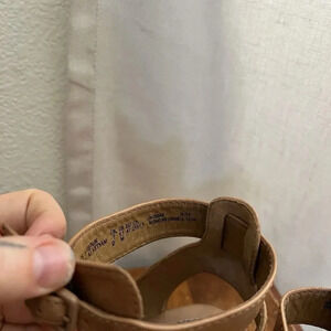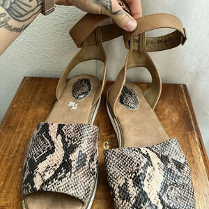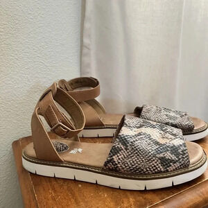 Clarks Artisan Lydie Hala Snake Comfort Flat Leather Sandals Womens 9.5 Tan Boho