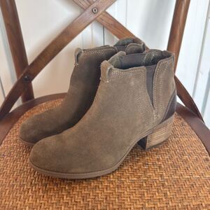 Clark’s Artisan Maypearl tan suede booties size 9.5