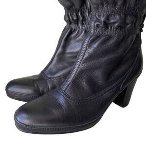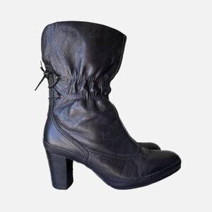 Clarks Artisan Mid Calf Heeled Boots Cinched Shaft 80s Style Women Sz 10 Leather