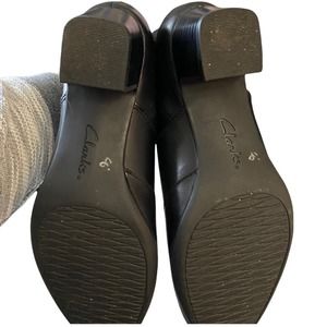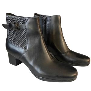 Clarks Artisan Rosalyn Lara Black Leather Stacked Block Heel Ankle Boot Narrow