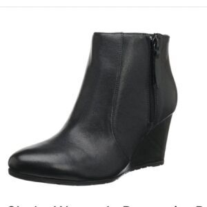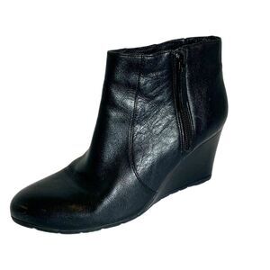 Clarks Artisan Rosepoint Bud Black Leather Side Zip Wedge Heel Bootie Size 10M
