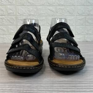 Clarks Artisan Sandal WMNS 8.5 Black Leather Comfort Hook Loop Cushioned Casual