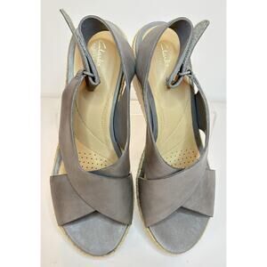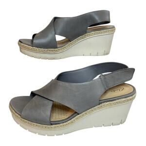 Clarks Artisan Sandals Womens Wedge Heels Slingback Strappy Gray Size 9 M