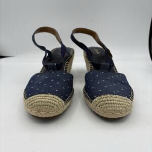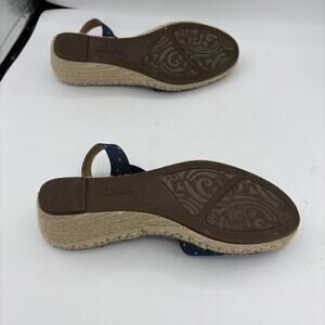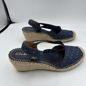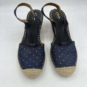 Clarks Artisan Shoes Womens 9 Petrina Kaelie Blue Canvas Sandals Espadrille Wedg