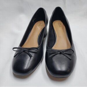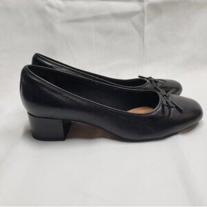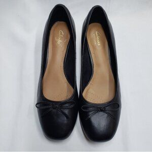 Clarks Artisan Slip On Block Chunky Heel Black Leather Shoes Size 9