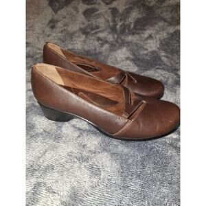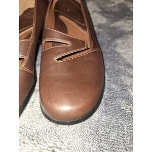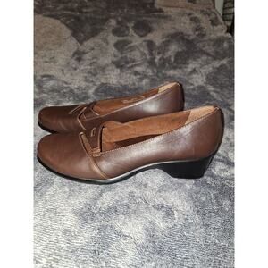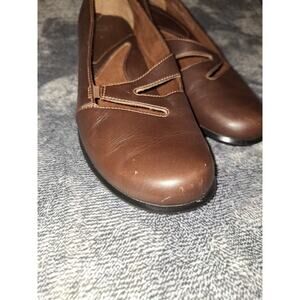 Clarks Artisan Slip On Shoes 8 Lea Hall II Womans Brown Leather Comfort Cut Out