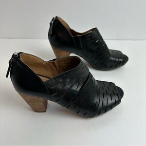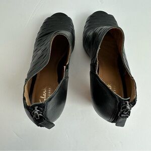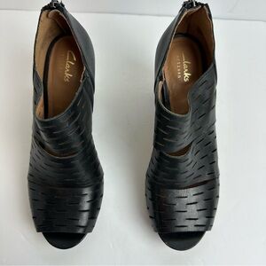 Clarks Artisan Stack Block Booties Women's size 8 or EU 39 Heels Black Peep Toe