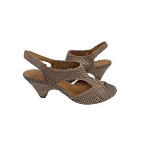 Clarks Artisan Taupe Perforated Leather Slingback Sandals Size 8M - {63802}