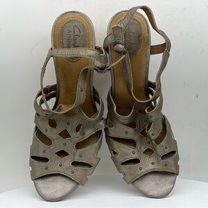 Clarks Artisan Wedge Sandals Fiddle String Espadrille Leather Neutral Tan Summer