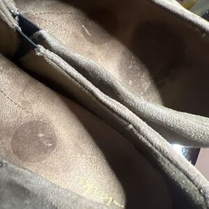 Stained footbed from removal of price stickers.