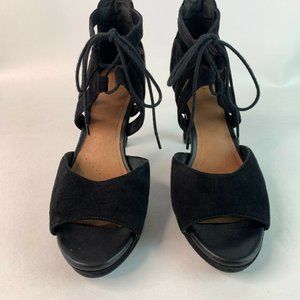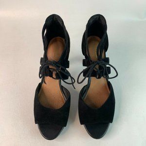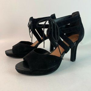 Clarks Artisan Womens Black Platform Heel Suede Open Toe Strappy Lace Up 8