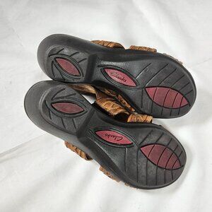 Clarks Artisan Women's Brown Wedge Sandals Crisscross Straps Buckle Back Sz 6.5W