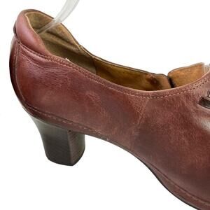 Clarks Artisan Womens Chunky Heels Brown Leather Side Zip Comfort Shoes sz 10 M