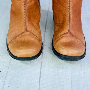 Condition: Gently preowned. Exterior boot shows minor signs of use such as creasing of the leather, minor scuffing, and sole wear. Wear to soles is even, and intact with shoe body. Zipper is functional. Inner sole is clearn and without excessive wear. Please see photos for best representation of overall condition, as well as measurements.