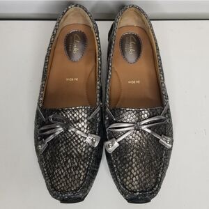 Clark's Artisan Women's Metallic Silver Snakeskin Slip On's Flats Loafer