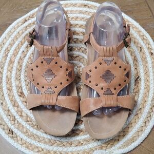 Clarks Artisan Womens Sandals Sz 10 Brown Leather Bronze Studs