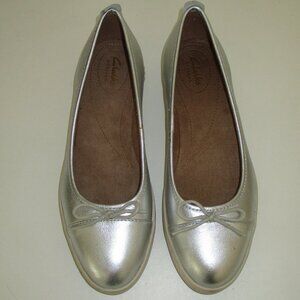 Clarks Artisan Womens Silver Flat Loafer NWOB. Size 7.5M. New w/o Box, suitable for gifting.