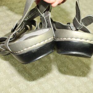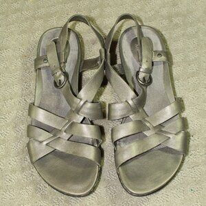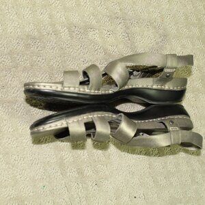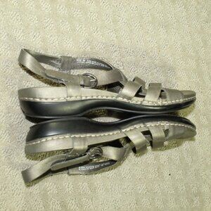 Clarks Artisan Women's Size 8M Pewter Leather Strappy Slingback Flat Sandals