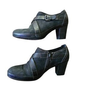 Clarks Artisan Women's Suede Side Zip Buckle Accent Ankle Boots Bootie Chunky 2.5" Heel Size 9.5