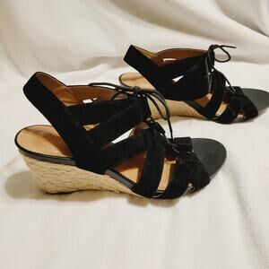 Clark's Artisan black suede lace up espadrille sandal size 9