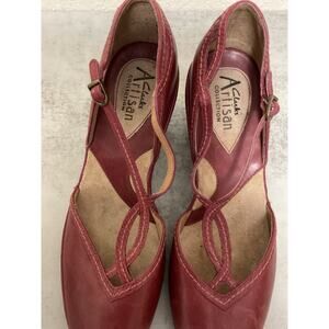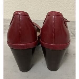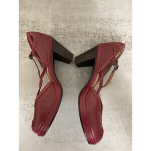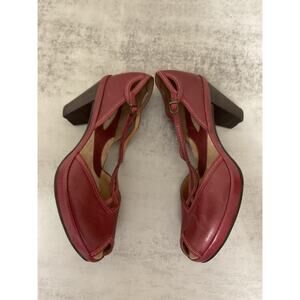 Clarks Artisian Women's Red Leather Heels 6M Open toe Ankle Strap Sandals